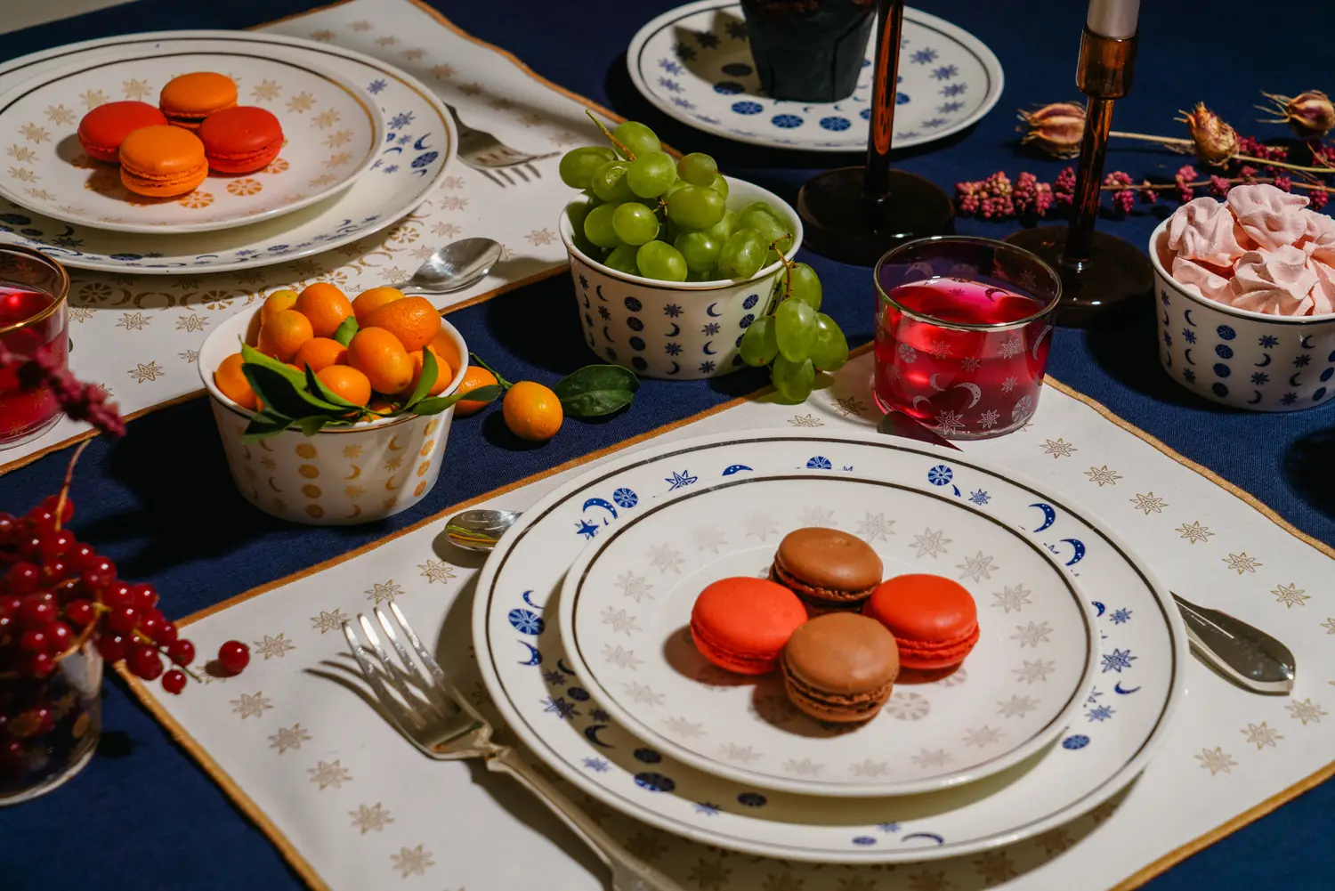 Our Astres Silver Bowl inspired illustrations embellishing our newest range of crockery. Meticulously crafted in Lebanon, our ceramics feature hand-printed designs using the finest techniques. Additionally, they’re microwave and dishwasher safe, ensuring convenience without compromising style.