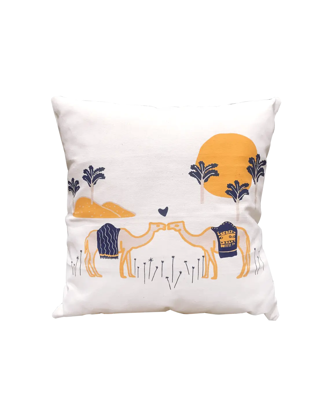 Our cushion cover is handmade from canvas and popeline textile. The design is printed in a small silkscreen atelier in Beirut. The zipper on the back is invisible. If you wish to clean it, simply pull out the cushion and pick a gentle machine cycle. Let’s add to your space a touch of elegance and quirkiness!