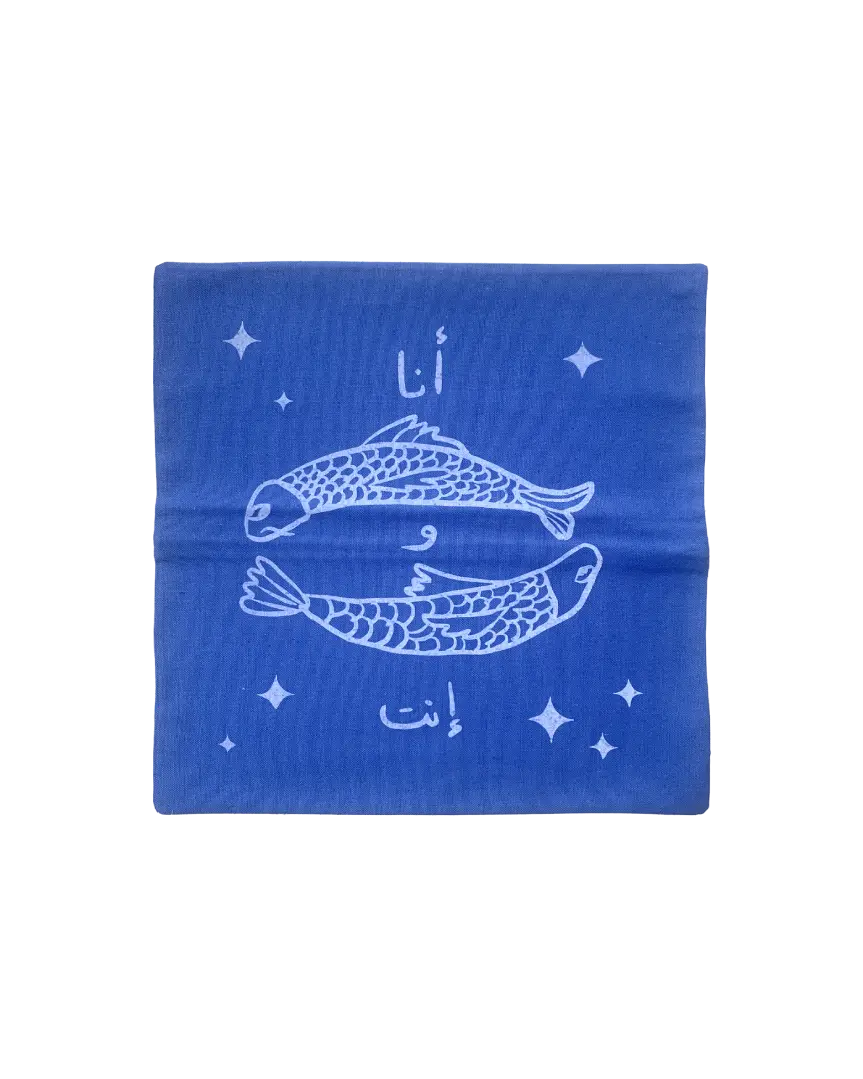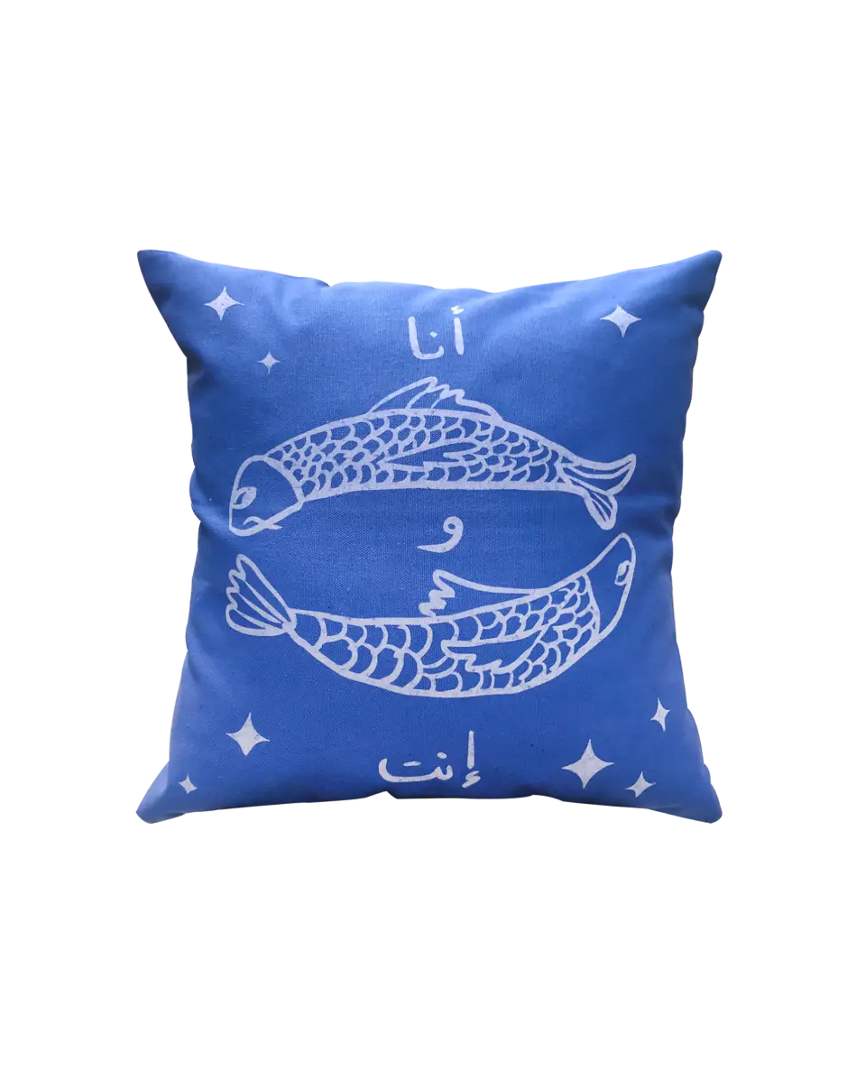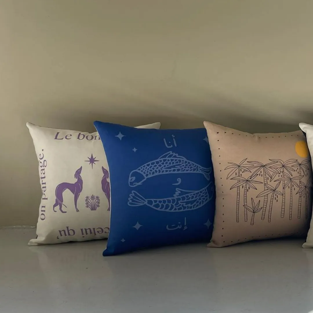 Our cushion cover is handmade from canvas and popeline textile. The Arabic lettering says Me and You. The design is printed in a small silkscreen atelier in Beirut. The zipper on the back is invisible. If you wish to clean it, simply pull out the cushion and pick a gentle machine cycle. Let’s add to your space a touch of elegance and quirkiness!