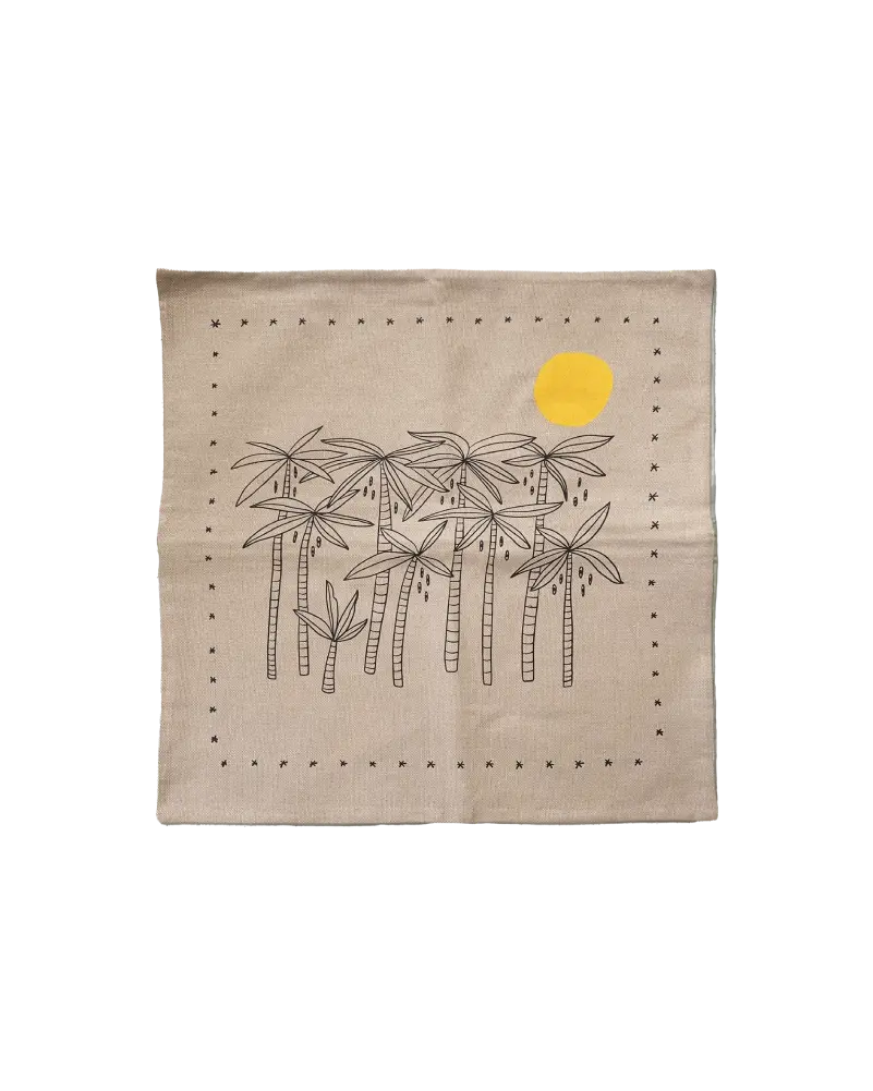 Our cushion cover is handmade from canvas and popeline textile. The design is printed in a small silkscreen atelier in Beirut. The zipper on the back is invisible. If you wish to clean it, simply pull out the cushion and pick a gentle machine cycle. Let’s add to your space a touch of elegance and quirkiness!