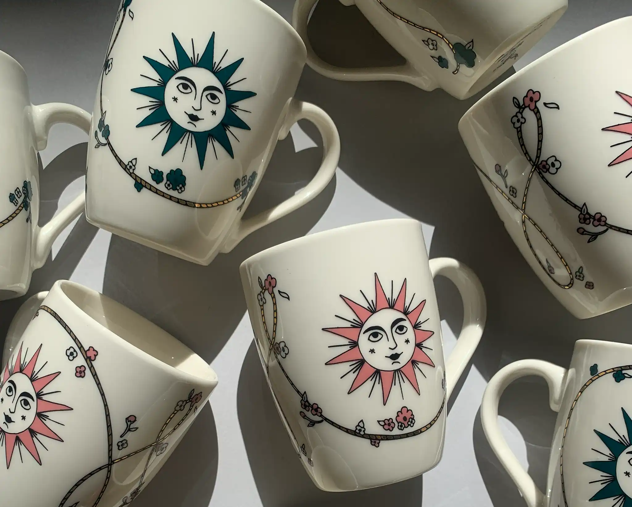 • CORNUCOPIA Pink Coffee Cup Set of 4