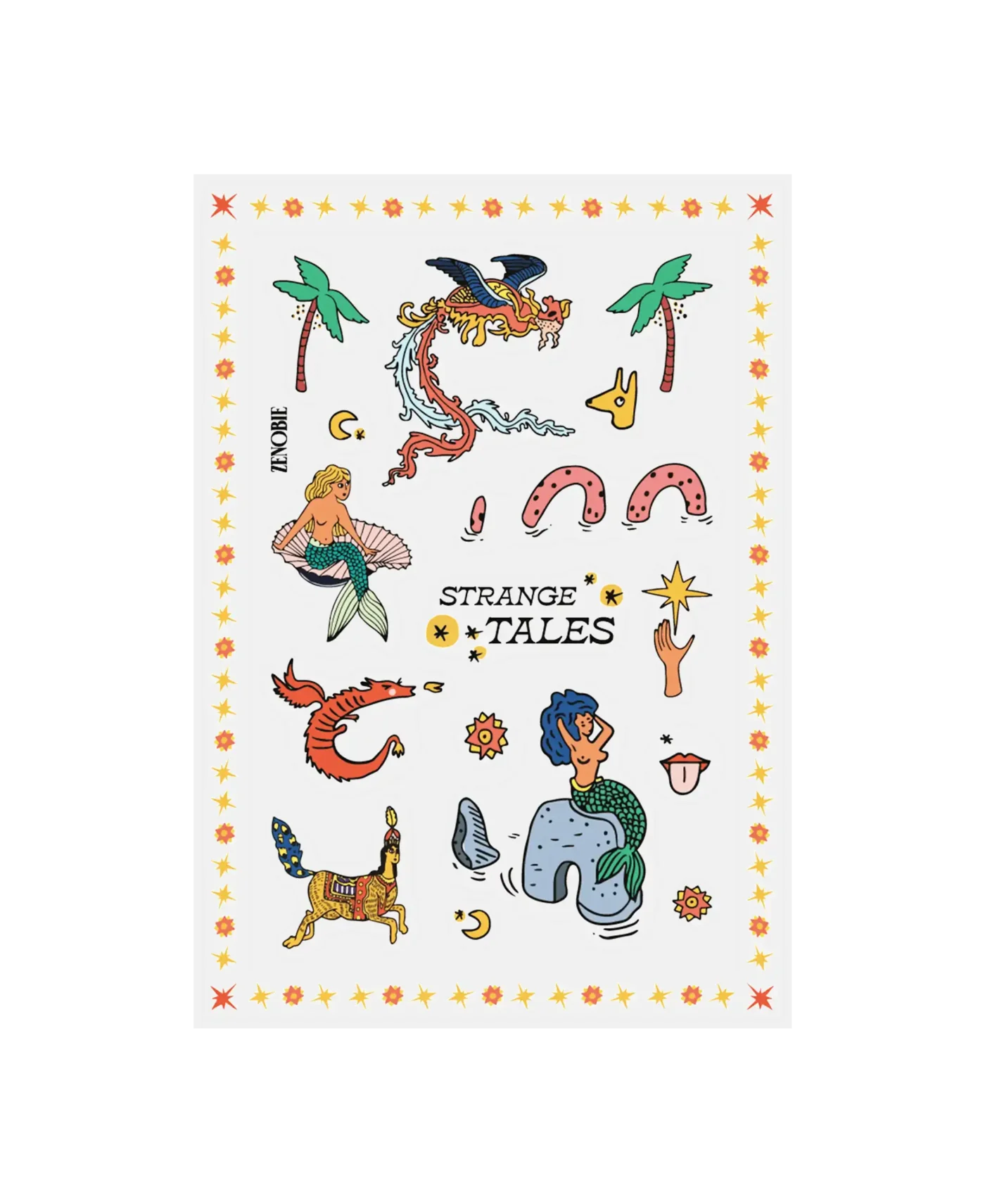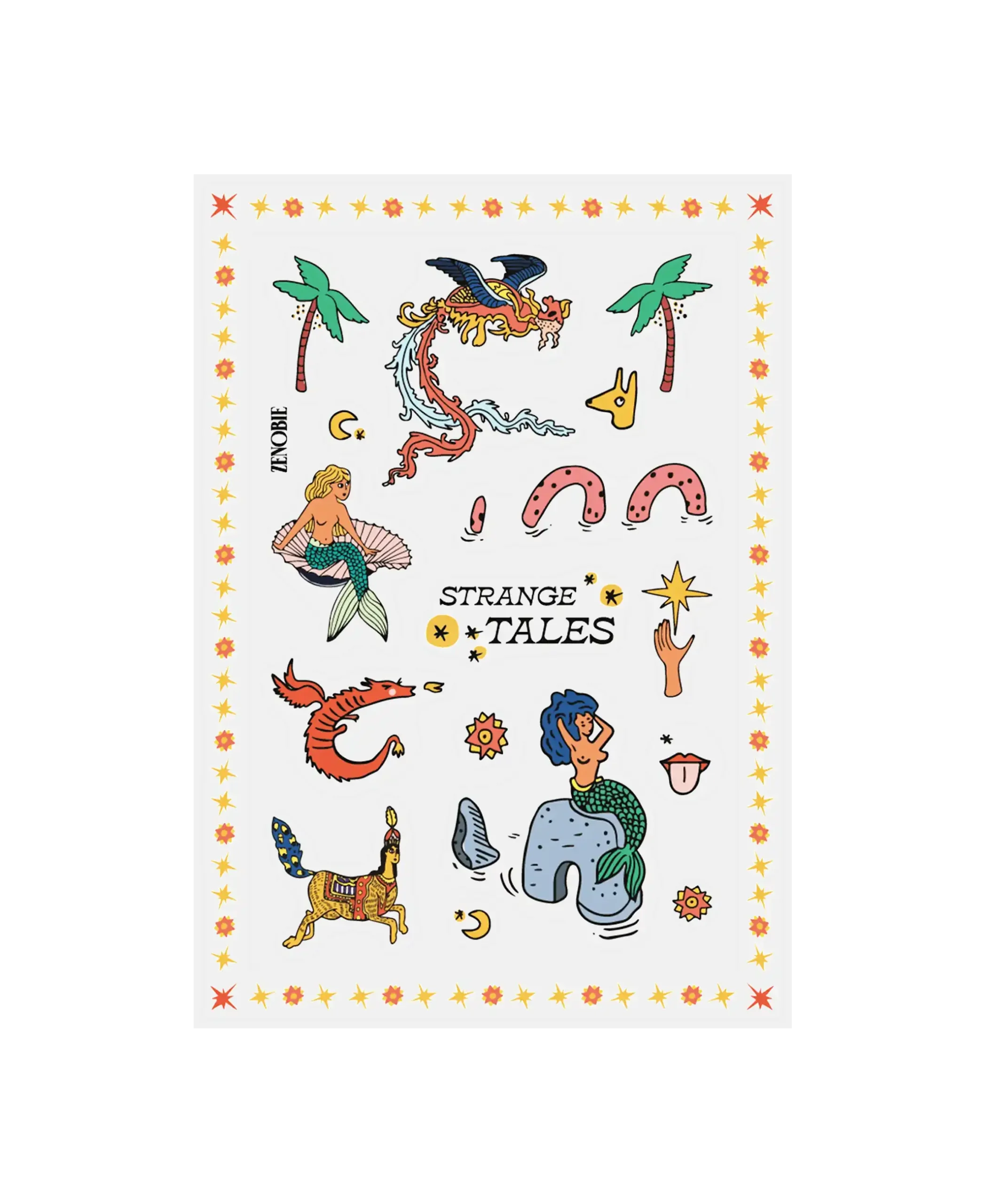 Strange Tales Sticker Sheet talks about strange tales taking place in remote islands, with luscious palm scenery and where beautiful creatures crawl out of the waters onto sandy gold shores to tempt us.